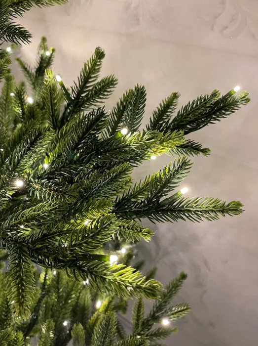Количество веток искусственной ёлки из литой резины на 100%! Новогодняя искусственная ель Королевская 100% литая - настоящая королева леса. По всем технических характеристикам ель соответствует международным стандартам качества, для товара подобного рода. Густые ветви, хвоя с имитацией живой иглы, цвет игл с переходом более светлым к кончикам, что вообще сравнивает её с живой. Обратите внимание на то, что общее количество веток у ели Королевской почти в 2 раза больше, чем у других моделей! Ель Королевская 100% литая со встроенной гирляндой добавляет дополнительный изыск - гирлянда равномерно и естественно красиво распределена на елочке.Изготавливаются веточки методом литья (материал РЕ-резина), для каждой используется своя форма, благодаря чему достигается максимальное сходство с настоящими ветками ели.