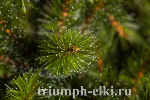 Искусственная пихта «Прелестная» бренда Triumph Tree совершенно неотличима от натуральной пихты. Хвоя изготовлена из жесткого поливинилхлорида, похожего на леску. Ветки смотрятся объемными и пушистыми.